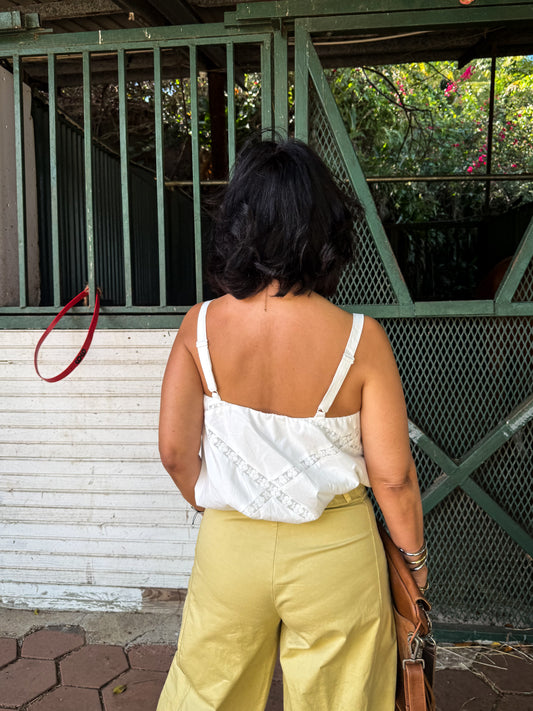 Lace Trim Bubble Crop Top