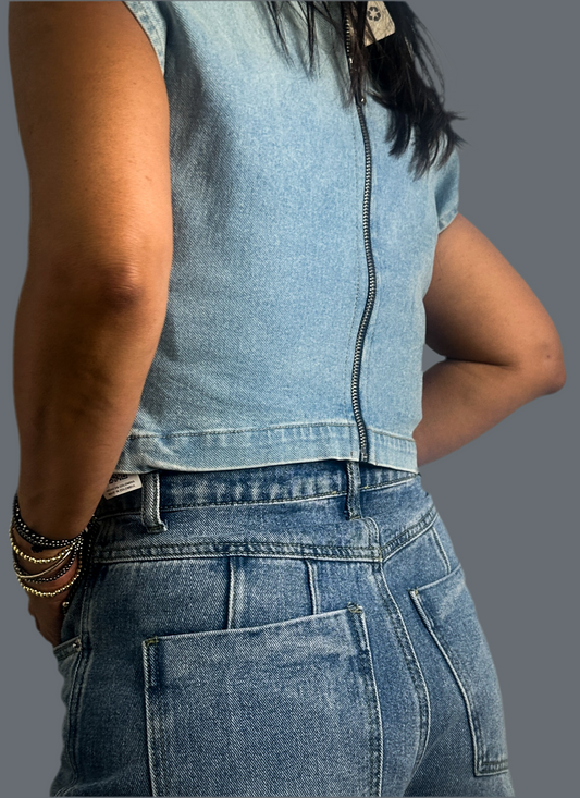 Denim Back Zipper Top