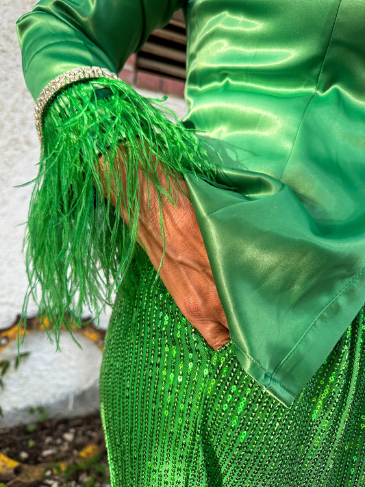 Satin Feathers Green Blouse
