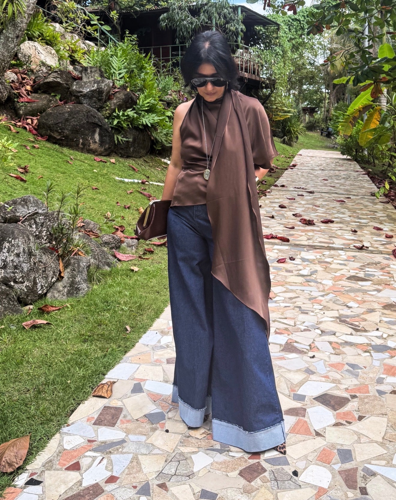 - Wide leg cuffed hem stretch jeans