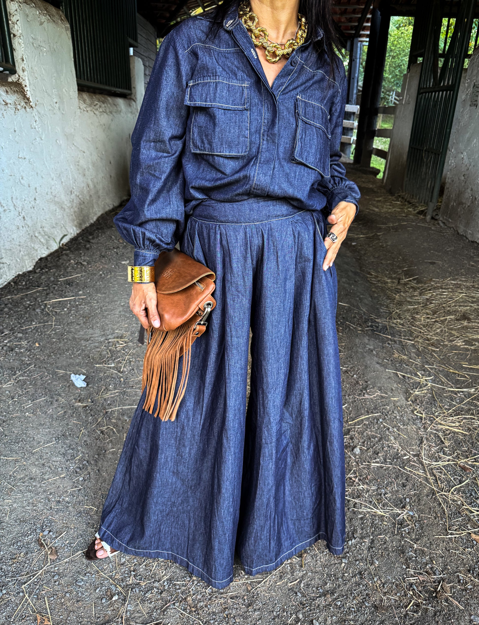 - Indigo Denim Blouse and Palazzo Set
