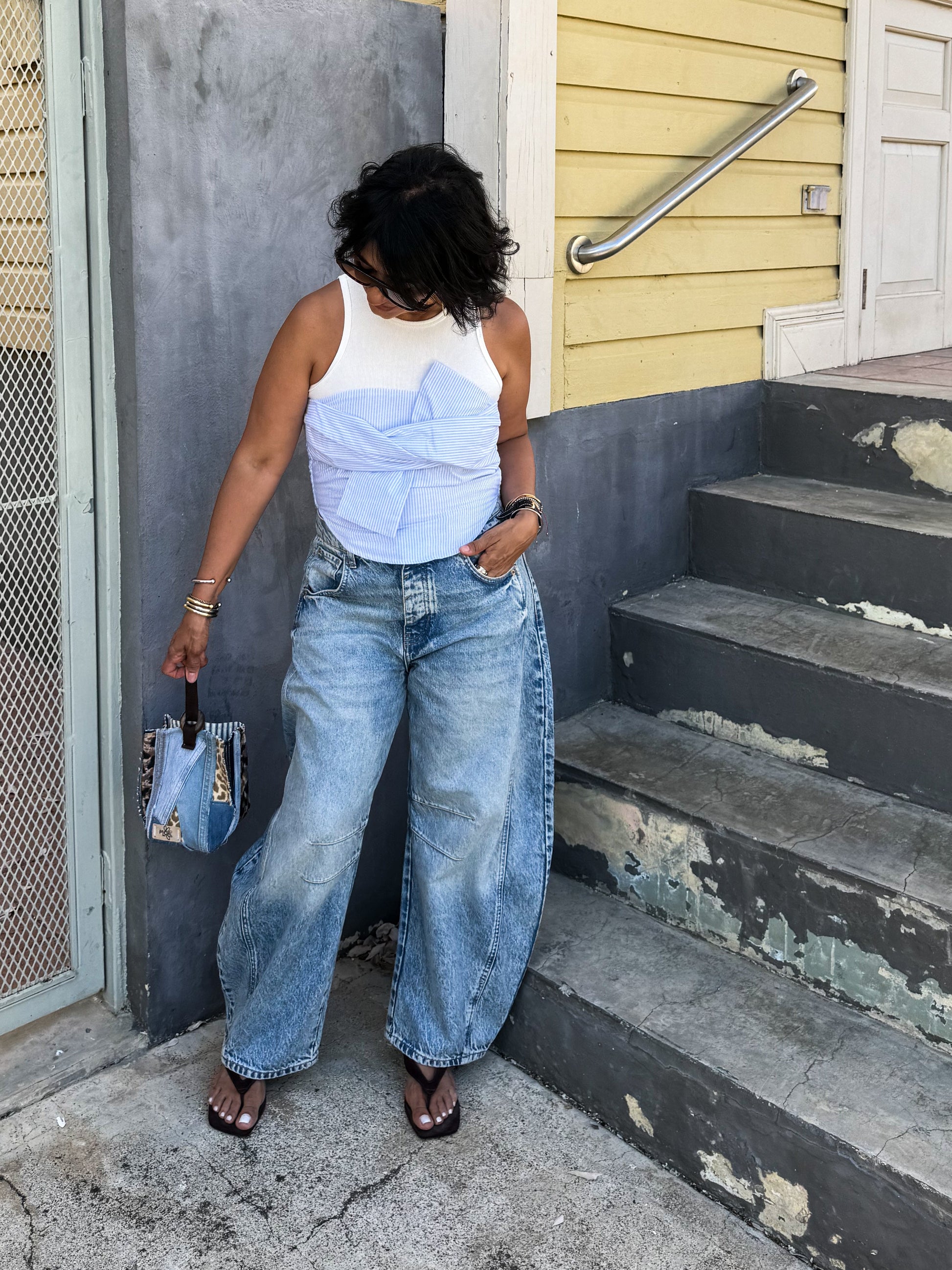 (Wearing size small, but medium fits me more comfortably.) 36-30-40 5’2”