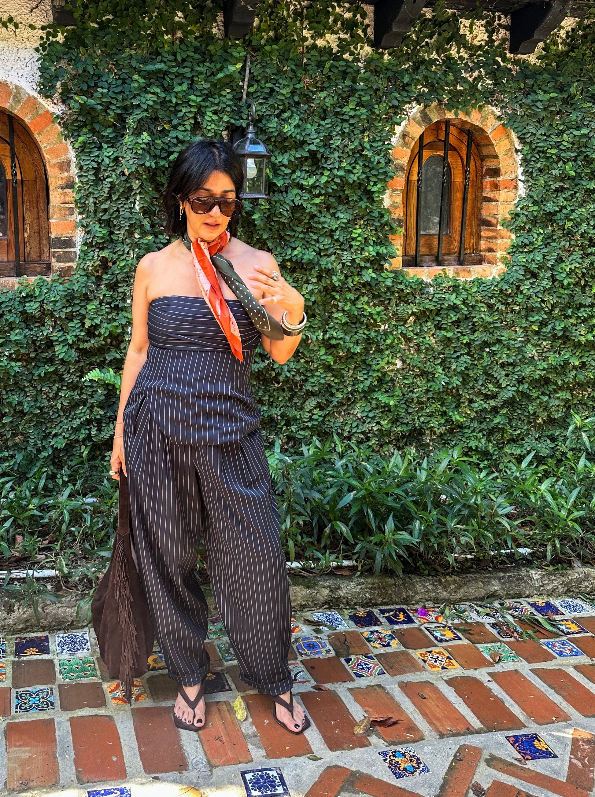 - Pants- Relaxed barrel-leg trousers. (Non-elastic waistband)